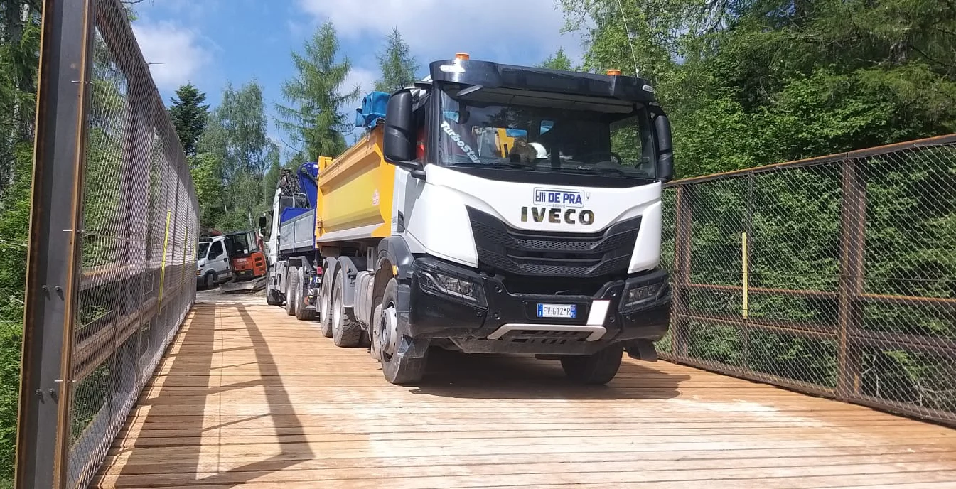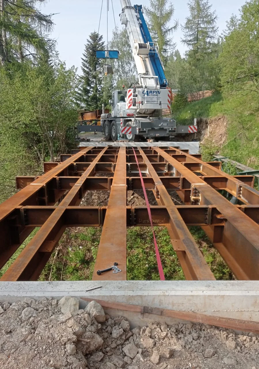 Dopo aver quindi smontato il vecchio impalcato, Bertazzon si è occupata dell’adeguamento delle spalle in calcestruzzo e della posa delle nuove travi in acciaio corten e della pavimentazione in legno.