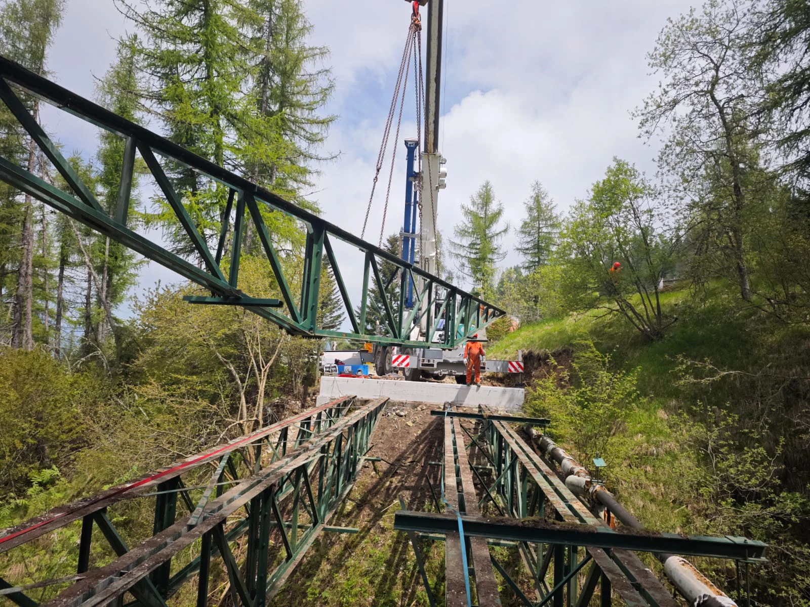 Pur mantenendo l’attale luce di 18 m, il rifacimento della struttura è finalizzato ad adeguarne sia la larghezza (che arriverà ad una luce netta di 6,5 m) sia la capacità portante (attualmente limitata al transito di mezzi di peso inferiore a 9 t) che verrà incrementata fino a permettere il transito di un mezzo di 40 t, nel caso in cui sia necessario eseguire lavori boschivi o di manutenzione degli impianti di risalita e dei rifugi a monte.
