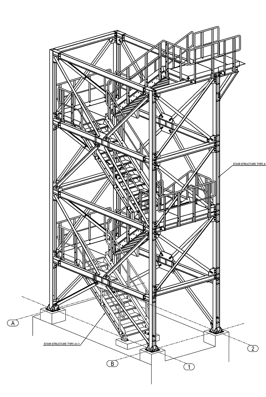 In aggiunta alle strutture principali sono state realizzate anche strutture secondarie, quali passerelle, scale alla marinara, grigliati e supporti piping.